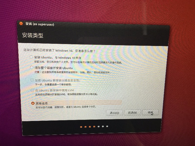 首先,在“安装类型”页我们选择“其他选项”,这是为了我们可以自由分区。