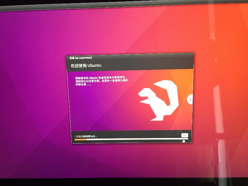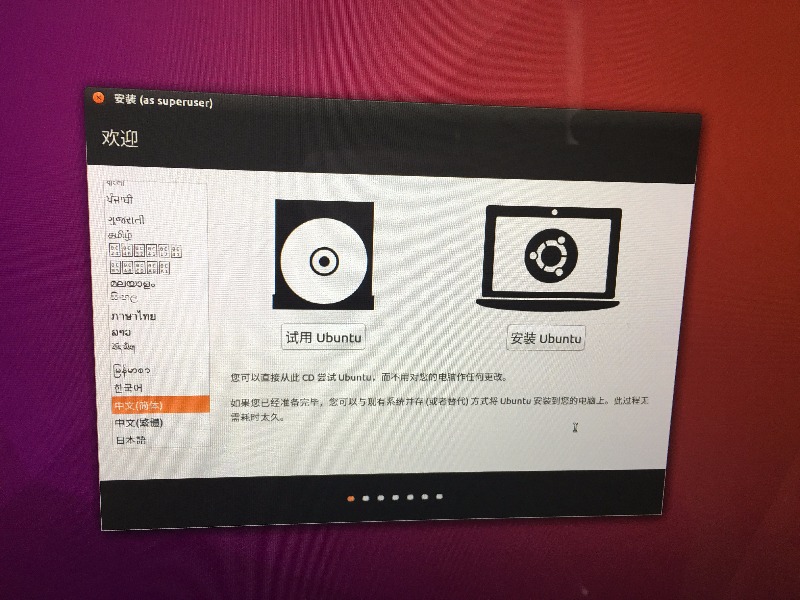 上述操作顺利的话,开机我们就会进入Ubuntu的系统安装页面,是不是很兴奋哈哈。